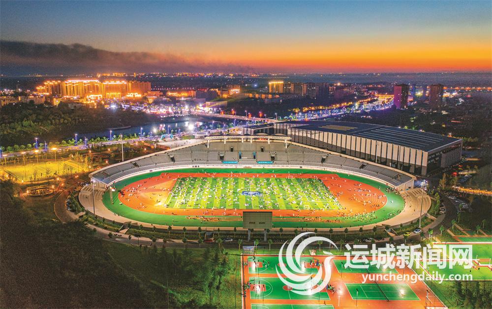 8月12日,夜幕降臨,華燈初上,夏縣白沙河畔的夏都體育中心流光溢彩,許多市民在此盡情享受運動的快樂。特約攝影 楊建峰