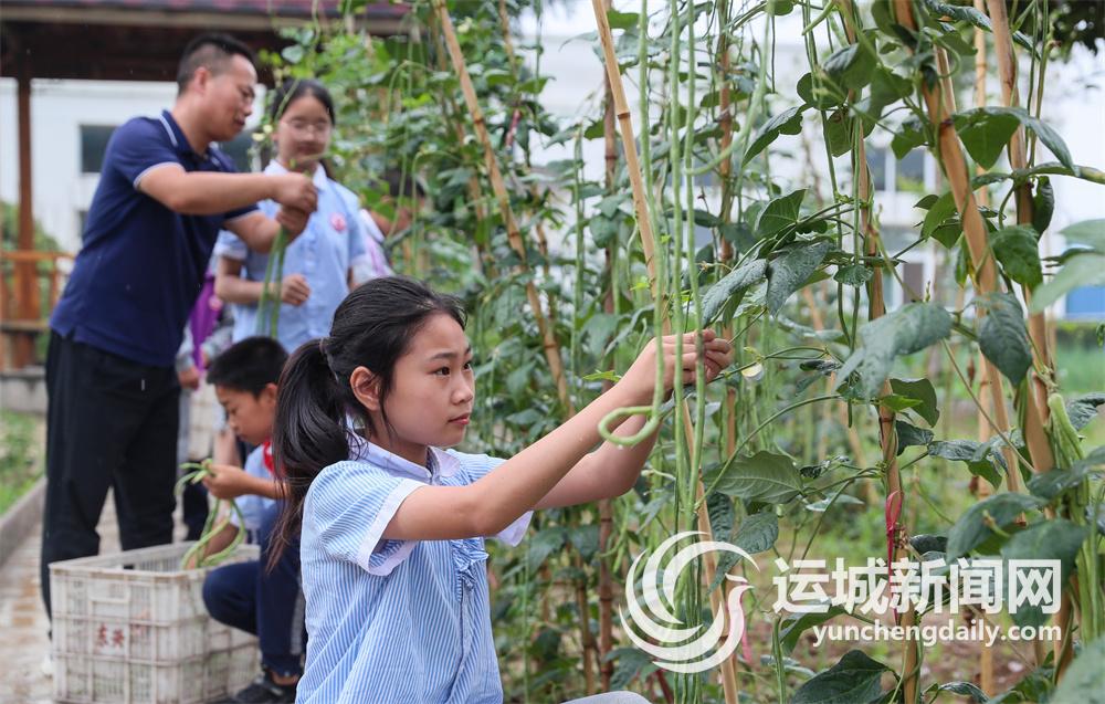 芮城縣西陌中心小學(xué)在暑期里讓學(xué)生體驗(yàn)蔬菜采摘。