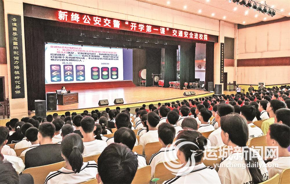 8?月?26?日,新絳縣公安局交警大隊“開學(xué)第一課”交通安全進校園小分隊民輔警在該縣職業(yè)教育中心為新生作交通安全知識專題講座。