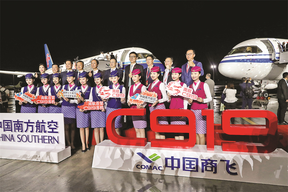 當(dāng)日,中國國際航空公司和中國南方航空公司在中國商飛總裝制造中心浦東基地同時(shí)接收首架C919飛機(jī)。這標(biāo)志著C919飛機(jī)即將開啟多用戶運(yùn)營新階段。