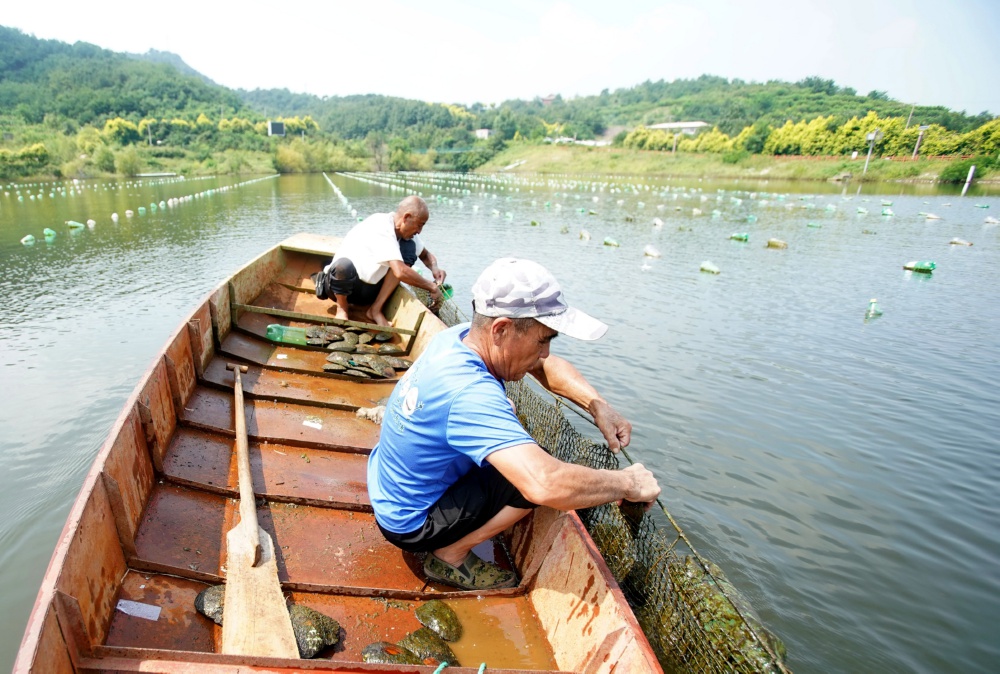 9月4日,河北省盧龍縣潘莊鎮(zhèn)一家水產(chǎn)養(yǎng)殖合作社的社員在養(yǎng)殖基地采收珍珠貝。近年來,盧龍縣引導(dǎo)農(nóng)民采取“合作社+基地+農(nóng)戶”的模式,大力發(fā)展特色水產(chǎn)養(yǎng)殖,促農(nóng)增收,助力鄉(xiāng)村振興。 新華社記者 楊世堯 攝