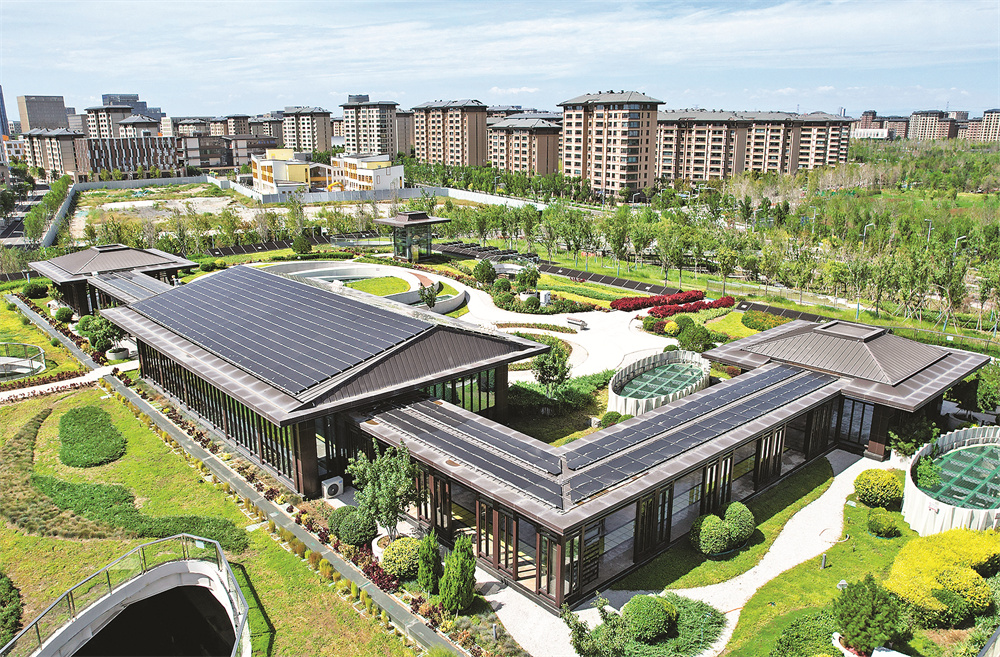 9月5日拍攝的河北雄安新區(qū)“智慧能源立方”——?jiǎng)〈?20千伏變電站外景。該變電站屋頂覆土建設(shè)成公園,形成與城市融合共生的圖景(無人機(jī)照片)。