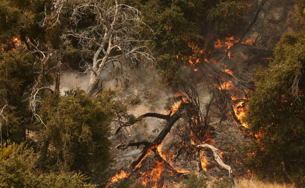 9月11日在加利福尼亞州洛杉磯縣拍攝的山火。美國加利福尼亞州州長加文·紐瑟姆11日宣布南加州4個縣進入緊急狀態(tài),以應(yīng)對正在肆虐的三處大型山火。
