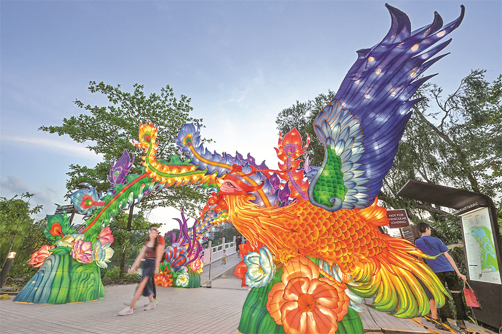 9月16日,人們?cè)谛录悠略@群▓@舉行的中秋燈會(huì)上游玩。當(dāng)日,眾多民眾來(lái)到新加坡裕廊湖花園觀賞中秋燈會(huì)。新華社發(fā)