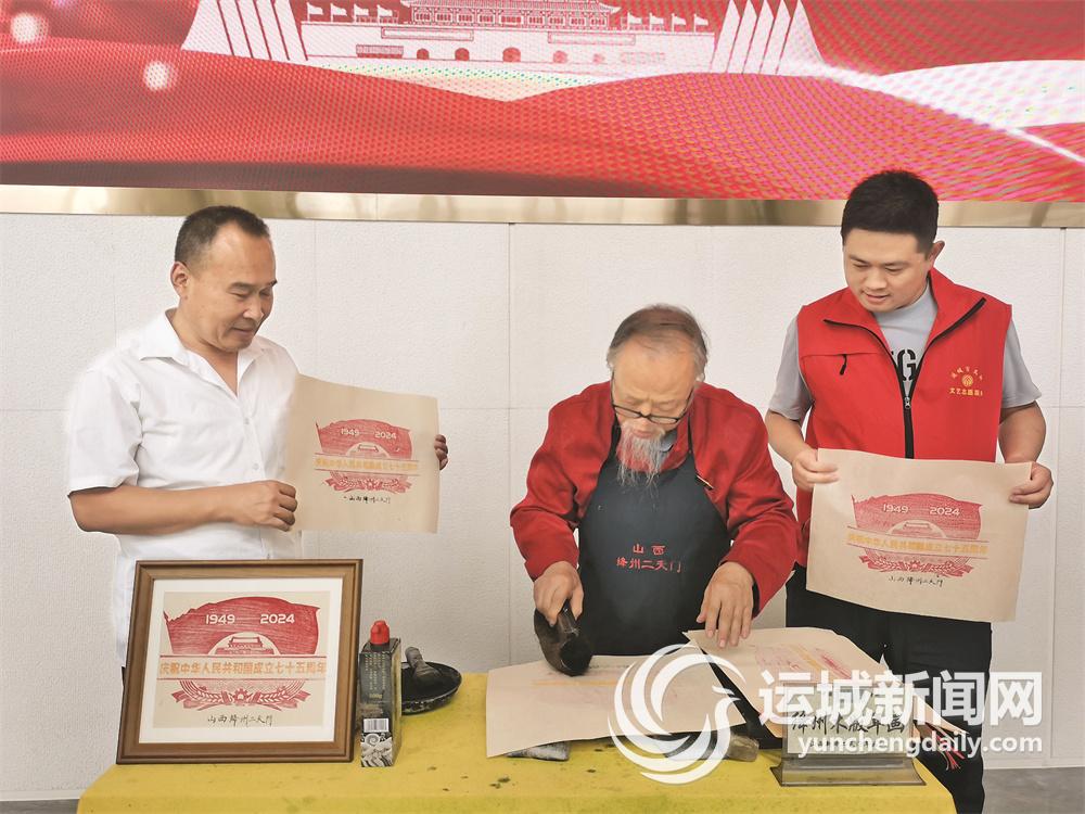 國慶前夕,木版年畫非遺傳承人吳百鎖,刻制木版年畫慶祝新中國成立75周年。 衛(wèi)世新 攝