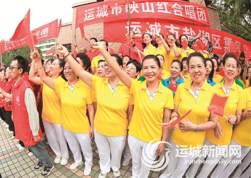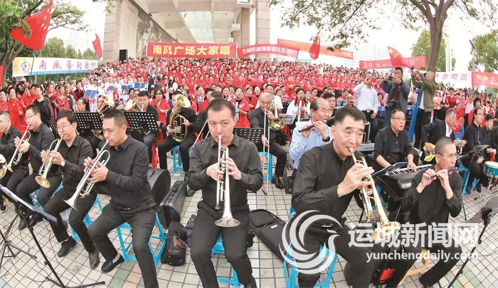 9月28日上午,天朗氣清,中心城區南風廣場西北角,紅旗飄揚,人潮涌動。不同性別、不同年齡、不同職業背景的19支合唱隊上千名合唱團成員,因為對音樂的熱愛和對祖國的深情走到了一起。他們引吭高歌,用火熱的激情、優美的旋律,為新中國成立75周年獻上最真摯的祝福。