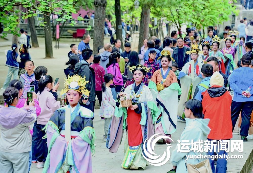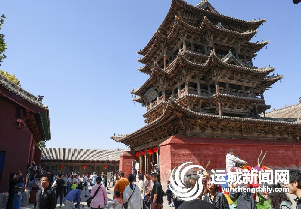 魅力鹽湖游人如織、關帝祖廟祈福納祥、鸛雀樓上登高望遠、飛云樓前打卡國寶、“悟空”元素激活古建……