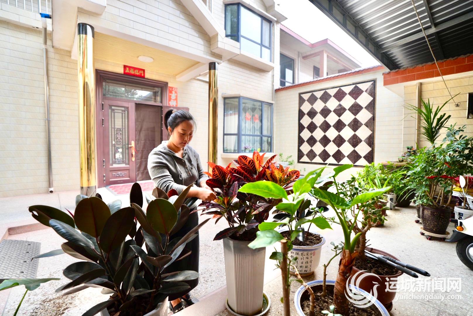 在夏縣,市級(jí)美麗庭院示范戶王曉霞在打理家中綠色植物。
