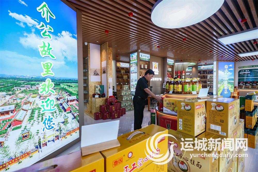 夏縣名特優產品裴介鎮展銷中心的工作人員在整理貨品。