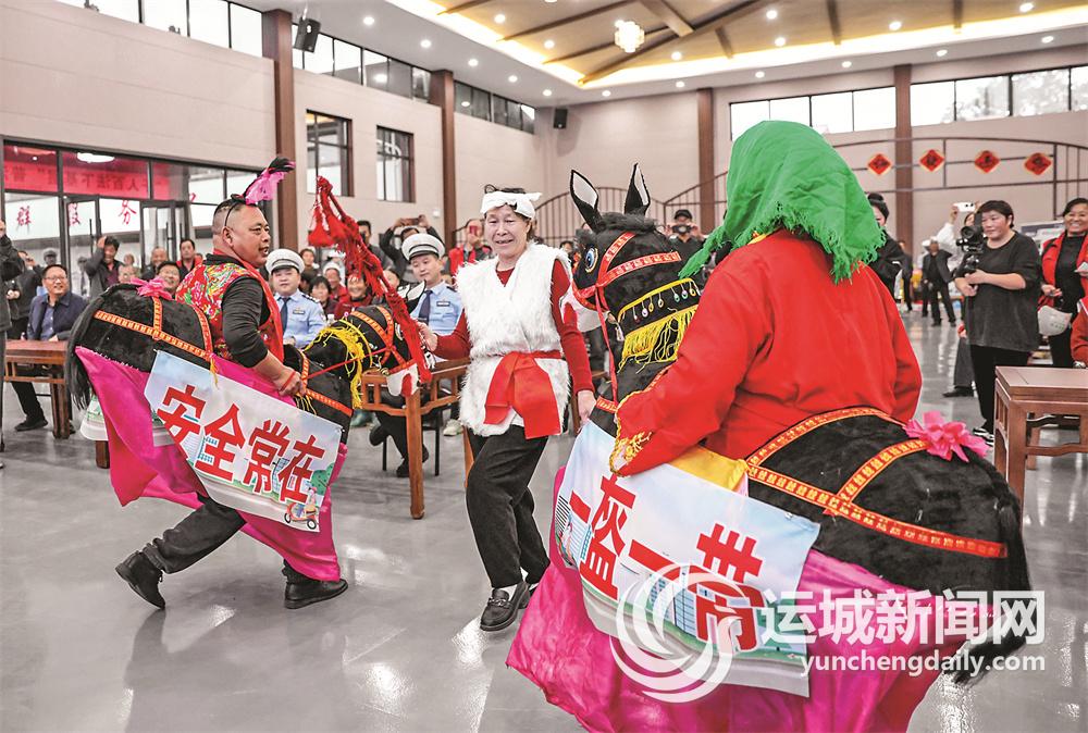 活動在歡快的威風鑼鼓中拉開序幕。小品《錯哪了》以運城味兒十足的詼諧表達和引人深思的劇情,對不戴安全頭盔、無保險上路、違法載人等常見交通違法行為進行諷刺揭露,引發(fā)村民熱烈討論。同時,現(xiàn)場還上演了一場具有地方特色的趕毛驢民俗表演,其中融入了豐富的交通安全元素,不僅展現(xiàn)了當?shù)氐奈幕攘Γ尨迕駛冊谛蕾p表演中感受到交通安全的重要性。演員們接地氣的表演方式,使得現(xiàn)場群眾紛紛叫好。