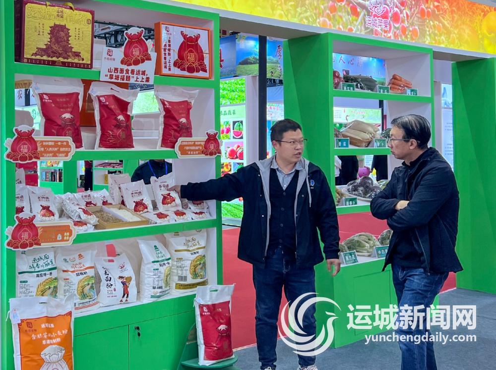 11月3日,參觀者在果博會“三個運城”展區了解運城面粉。