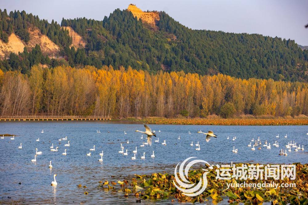 隨著天氣漸冷、溫度漸低,近期,平陸縣的黃河濕地迎來大批南遷的大天鵝棲息越冬,目前已達到2000多只。