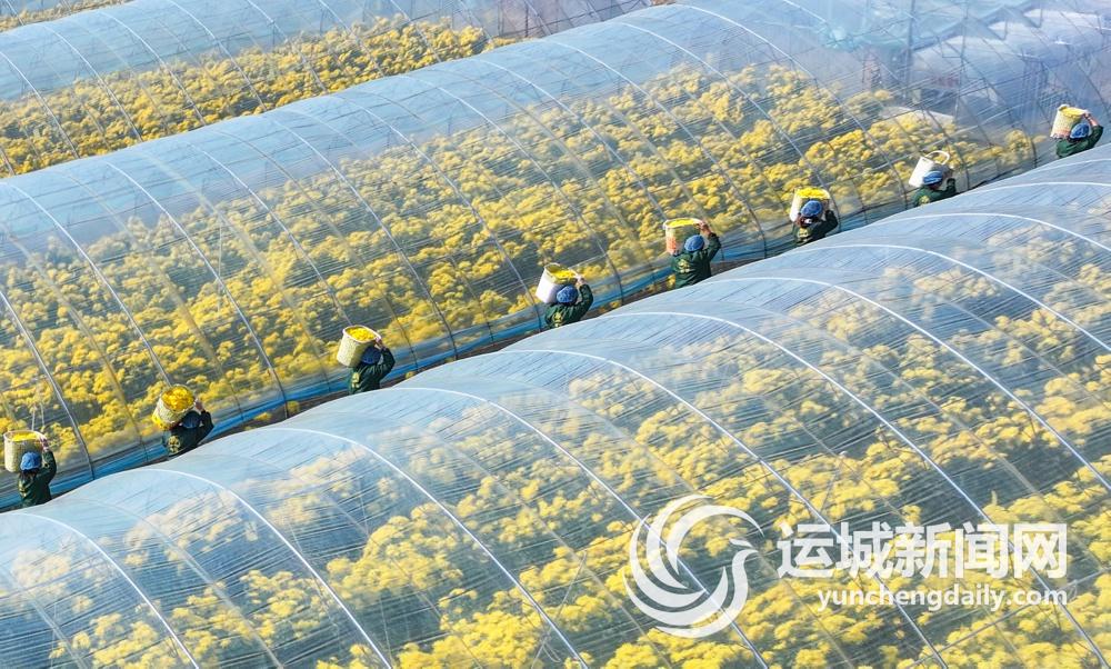 11月6日,位于夏縣的運(yùn)城夏馨茶業(yè)有限公司員工正在采摘金絲皇菊。