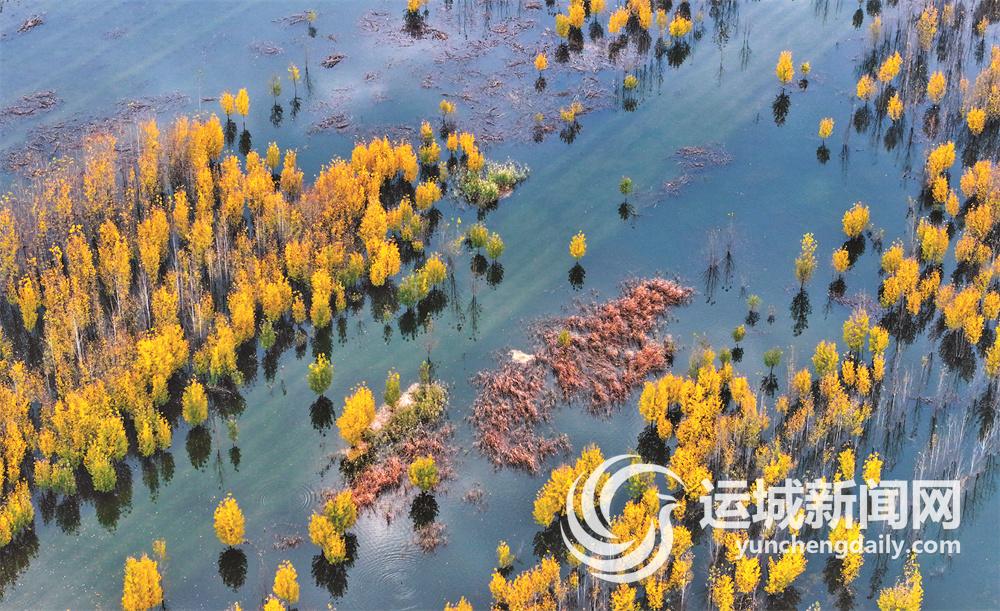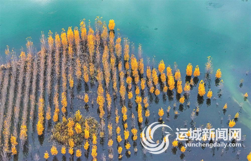 白楊樹(shù)樹(shù)葉由綠變黃,色彩斑斕,秋意濃烈,讓人仿佛置身于金色海洋中。一排排、一列列倒映在藍(lán)天碧水中,又宛如一幅幅美麗天成的畫卷。郭改梅 攝
