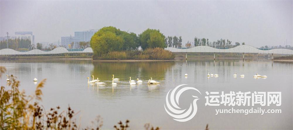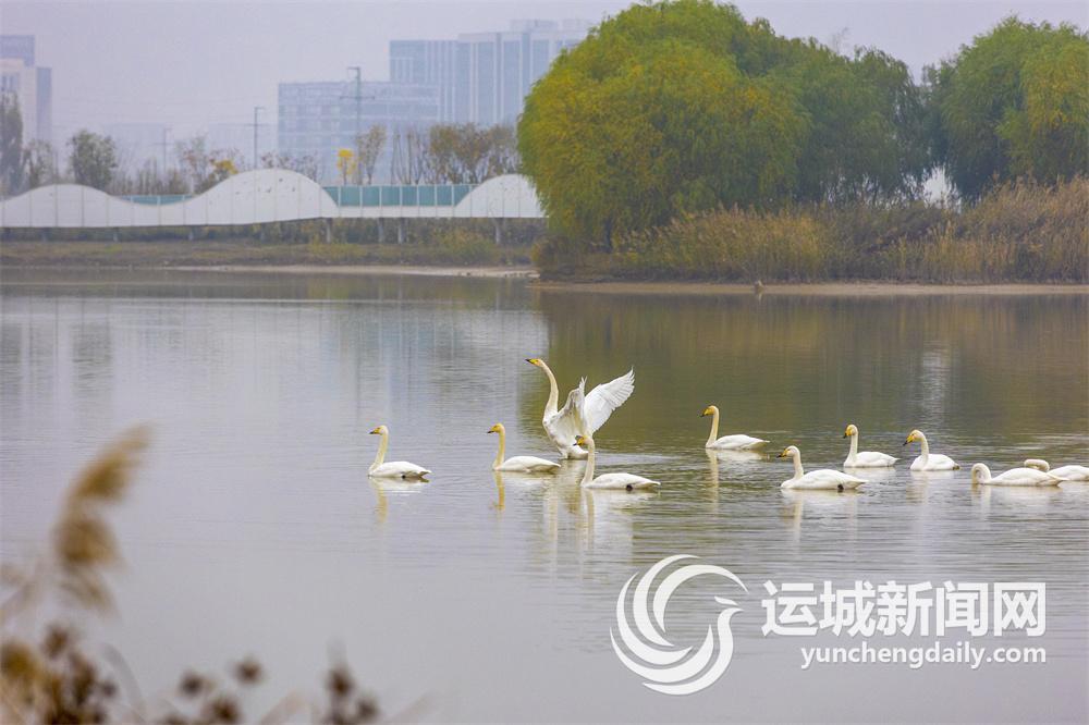 隨著氣溫持續降低,成群野生大天鵝陸續飛抵中心城區堯夢公園越冬。美麗的大天鵝在湖面上嬉戲玩鬧,它們時而引吭高歌,時而展翅高飛,給冬日的堯夢公園增添了無限活力(11月15日攝)。