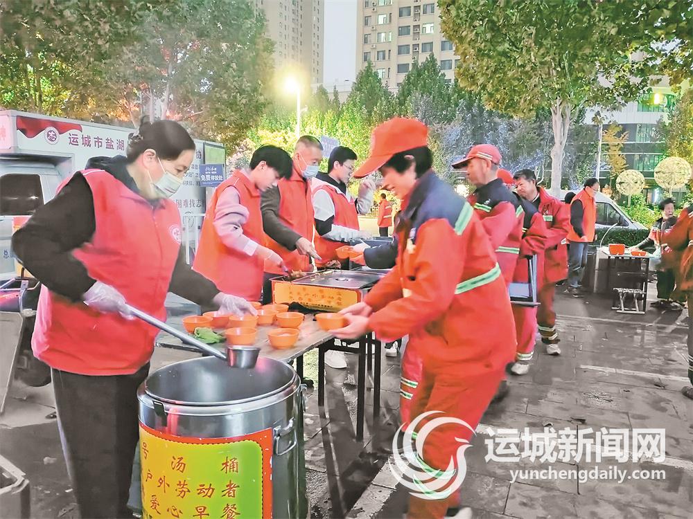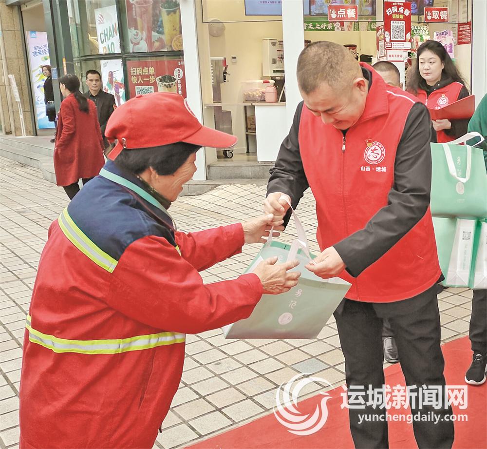 這是鹽湖區第一時間志愿者協會聯合運城市南風購物中心有限公司開展的“為環衛工人送溫暖”活動現場。志愿者和愛心人士用一副副飽含心意的手套和一句句真切的暖心問候,將溫暖和關愛送到了環衛工人心坎上。