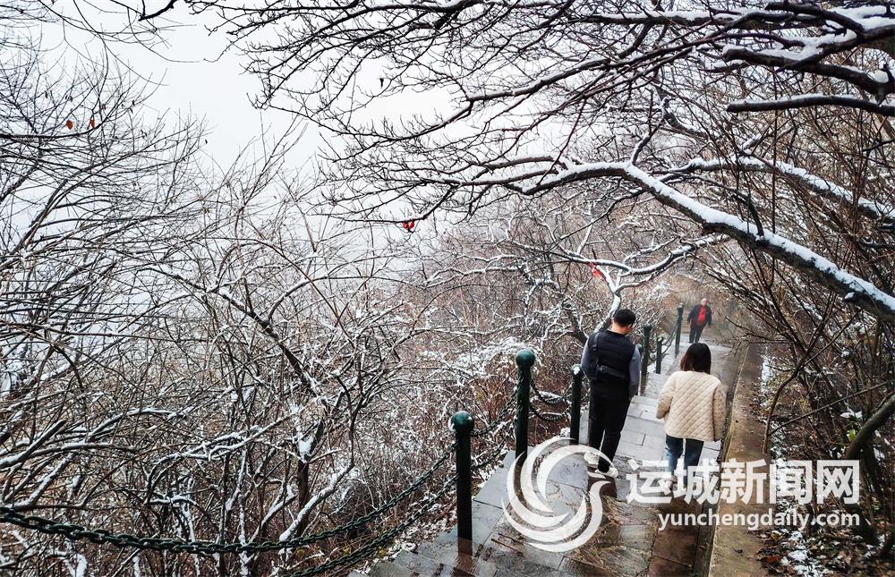 11月18日,受降溫影響,中條山上出現今冬首次降雪。雪后的中條山,銀裝素裹、云霧繚繞,宛如一幅壯美畫卷,吸引眾多游客前來賞雪景、觀云海。