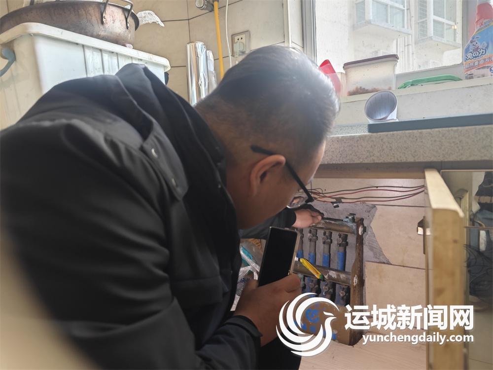近日,中心城區供熱企業網格員,正在市民家中排查供暖管道故障。
