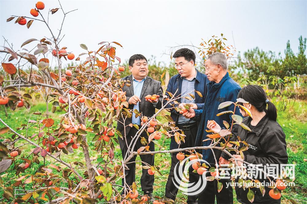 市農業農村局相關專家在榮輝公司柿子標準化種植基地查看柿子長勢。記者 陳方斌 攝