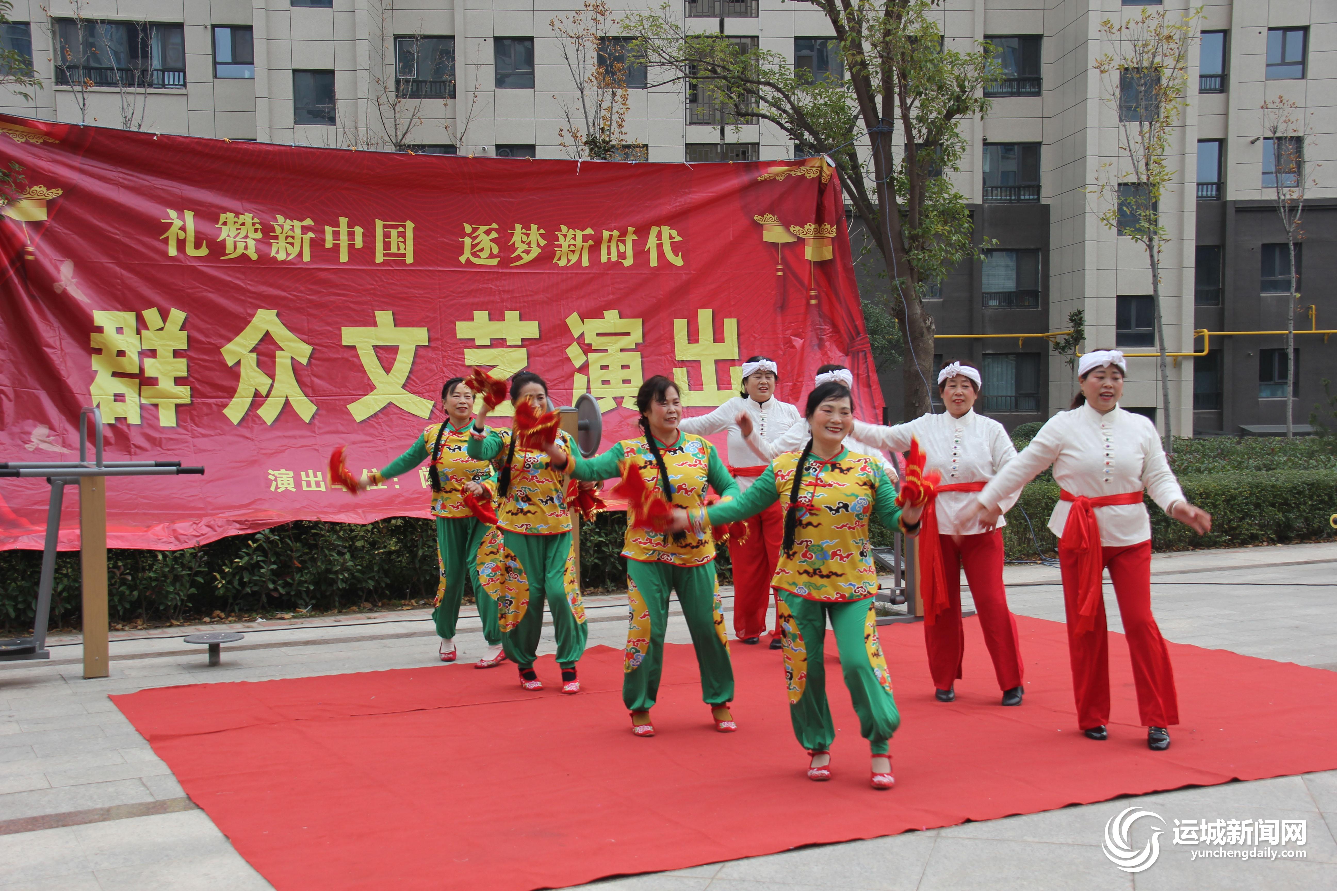 為豐富小區居民文化生活,營造幸福和諧大家園,由聞喜縣行政審批服務管理局、工業園社區聯合主辦,福瑞臨物業工會協辦,聞喜縣桐城藝術團承辦的“禮贊新中國 逐夢新時代”群眾文藝演出當日走進天府苑小區,為居民們呈現了一場精彩紛呈的文化大餐。