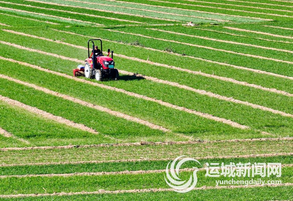 12月3日,農(nóng)民在永濟(jì)市開張鎮(zhèn)棗圪塔村進(jìn)行冬小麥碾壓防凍保墑作業(yè)。
