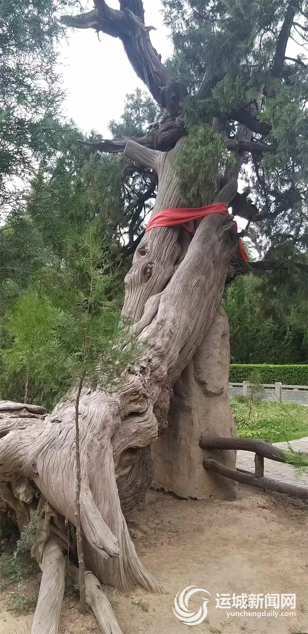 舜帝陵墓旁有一棵古柏,樹齡亦在數千年。古柏無言,年輪有聲,它們以特殊的形態記錄著發生在鳴條崗上的變遷,也記錄了默默保護它們的一代士子。