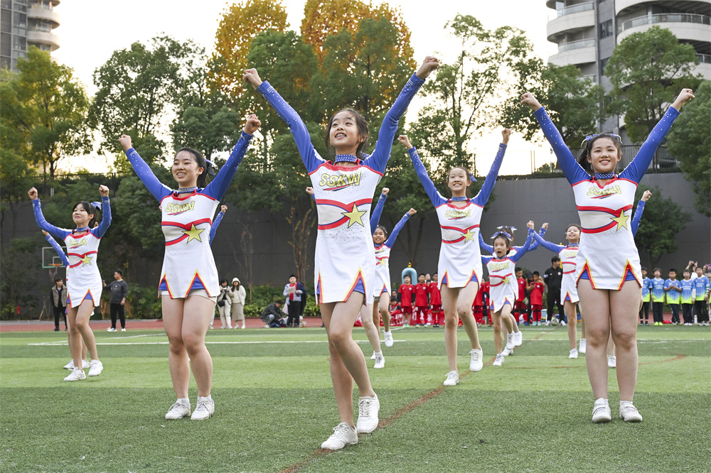 12月2日,湖北省武昌實驗中學沙湖學校學生表演啦啦操。