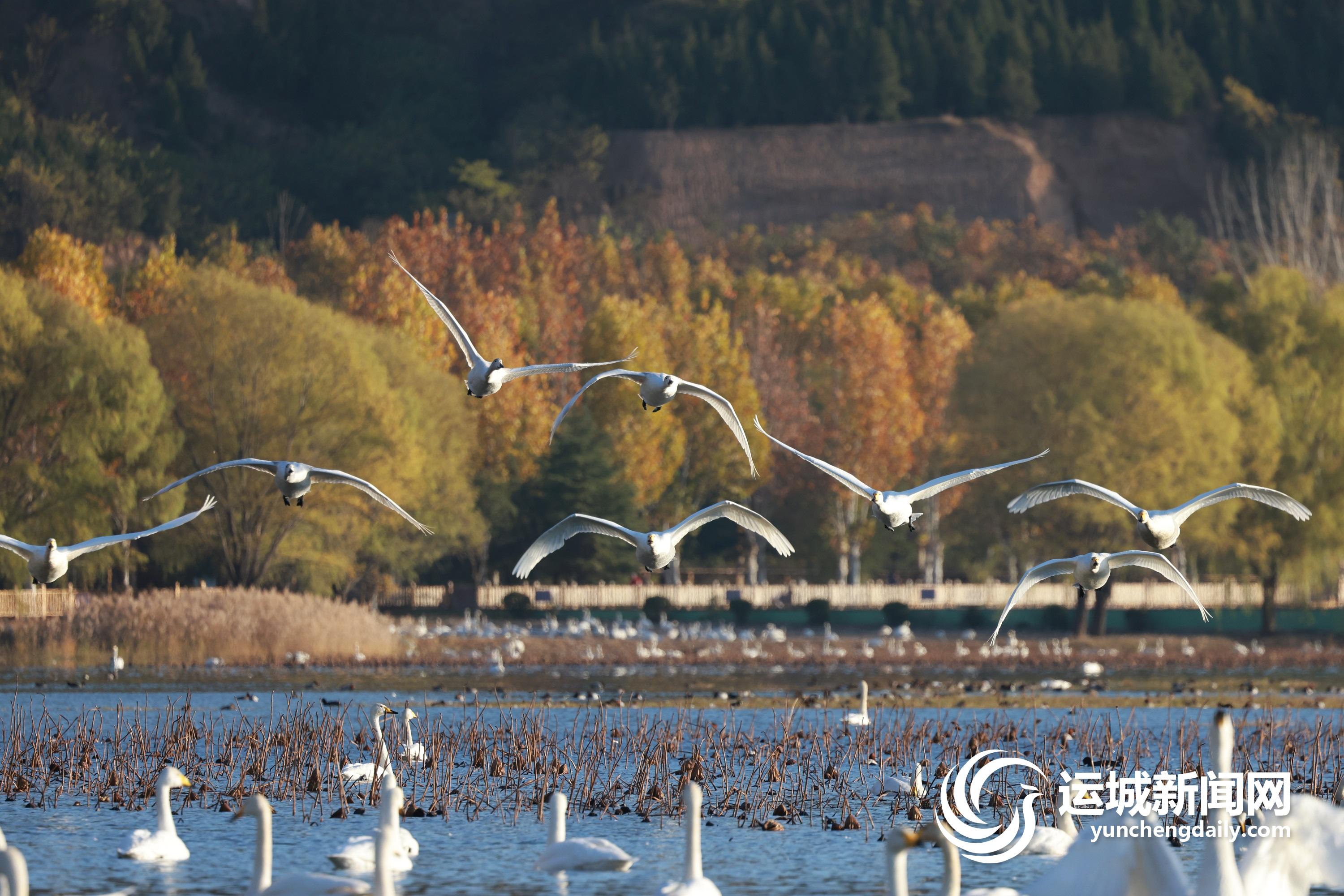 近日,在平陸縣三灣大天鵝生態濕地公園內,成群的天鵝時而自由覓食,時而展翅飛翔,吸引了眾多游客觀賞拍照,形成了一幅人與天鵝和諧共處的美好畫卷。