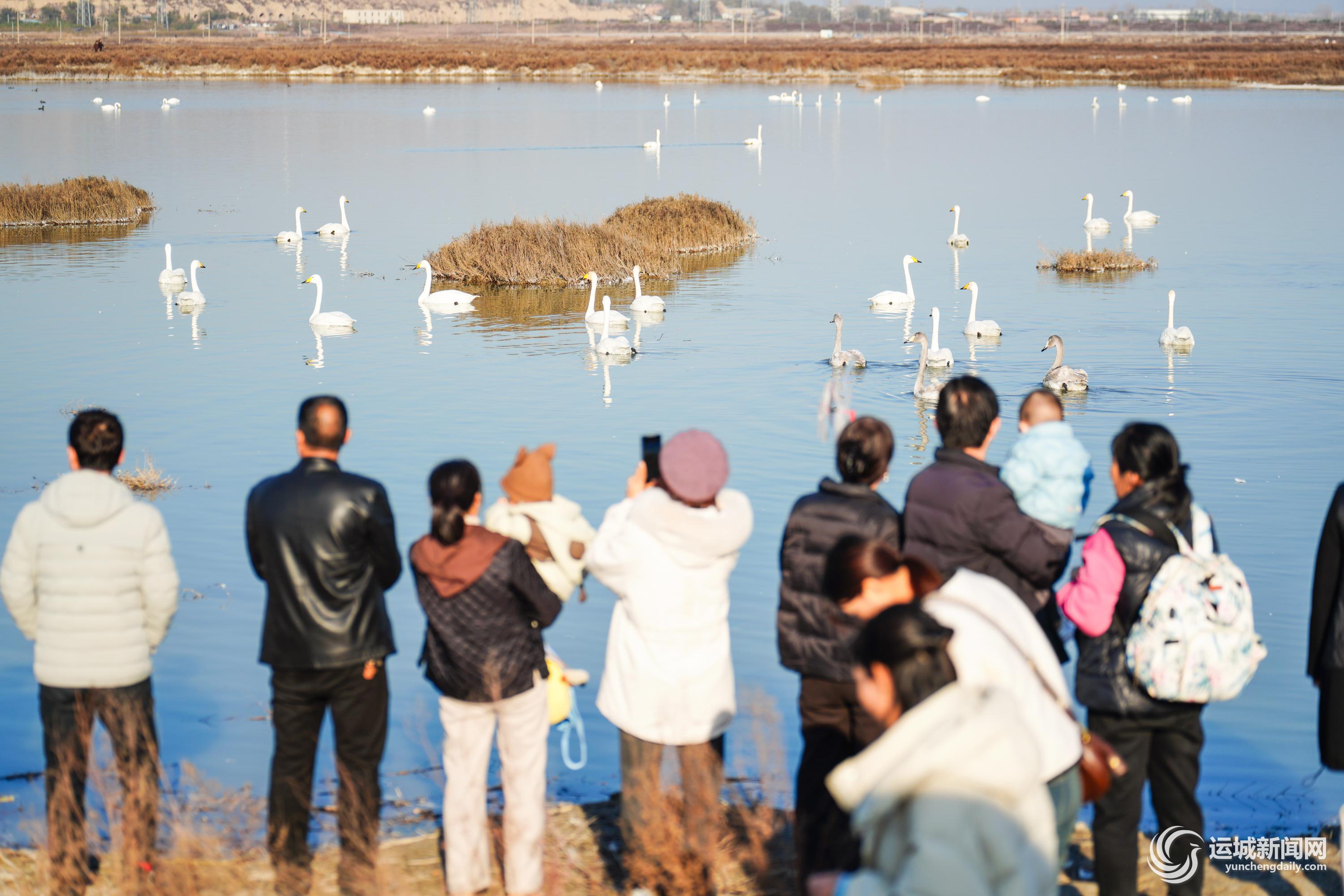 “最近鹽湖的天鵝吸引了不少市民游客來觀賞,我們特推出了觀光路線,讓游客可以乘坐觀光小火車賞天鵝、游棧道,欣賞冬日鹽湖美景。”市水務(wù)投資建設(shè)開發(fā)有限公司鹽湖運(yùn)營小組工作人員張?zhí)煜步榻B,“從11月29日試運(yùn)營至今,累積乘坐人數(shù)5000多人。”