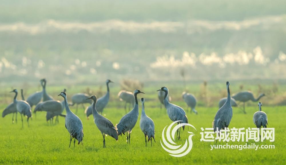 近日,一群灰鶴在鹽湖區(qū)解州鎮(zhèn)的連片麥田里覓食、棲息。據(jù)悉,灰鶴是國家二級保護野生動物。 高志勇 攝