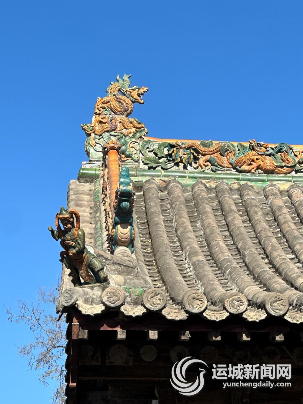 宋時修建的龍香關帝廟,歷經多次修繕與擴建,建筑風格也融合了明清兩代的特色,雕梁畫棟、琉璃溢彩,尤其殿頂的琉璃鴟吻、蹲獸、仙人、脊剎也很是出彩。