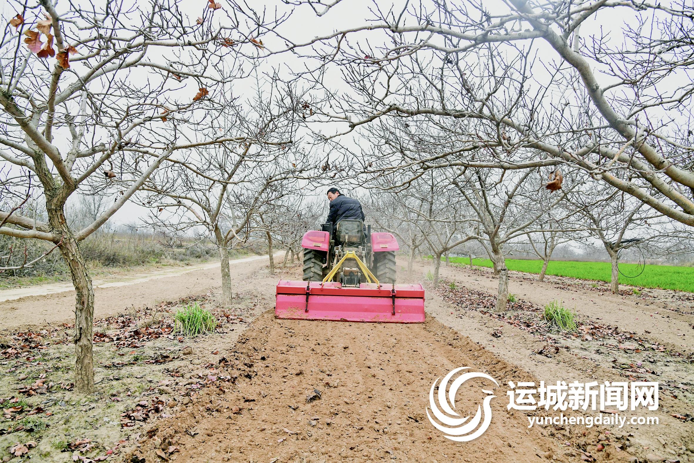 近日,聞喜縣陽隅鎮的果農在田間耕地。