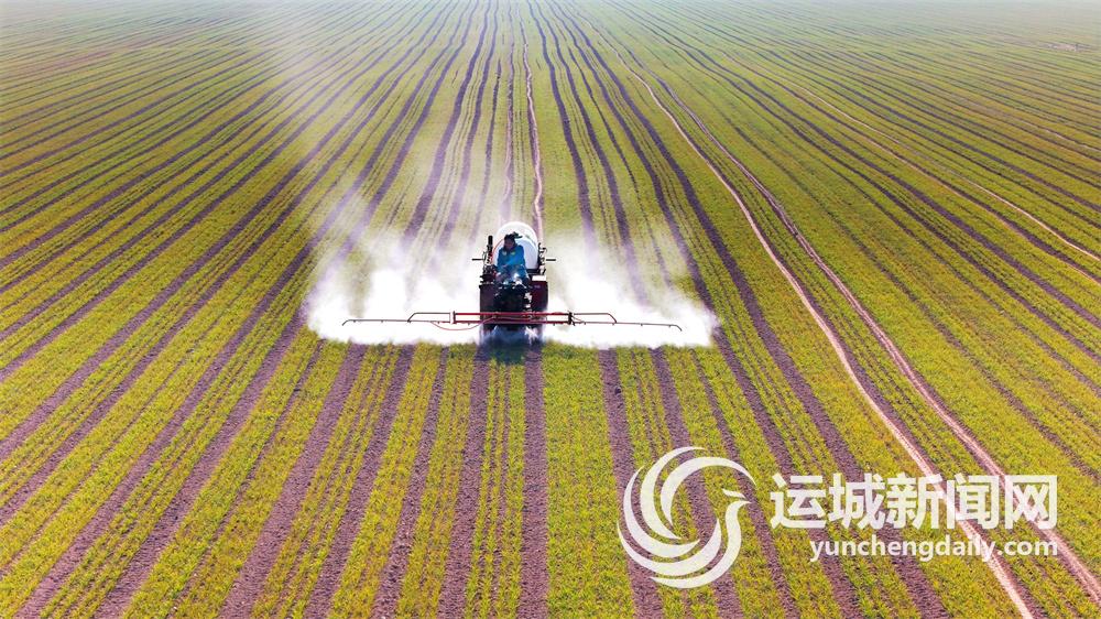 12月20日,在萬榮縣一處黃河灘麥田里,農戶駕駛拖拉機進行噴藥作業。近段時間來,萬榮縣加強小麥精準科學管理,確保小麥安全越冬,為明年夏糧豐收打好基礎。