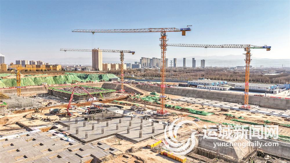 12月21日,運城市人民醫(yī)院建設(shè)項目(一期)工地,建筑工人在加緊施工。