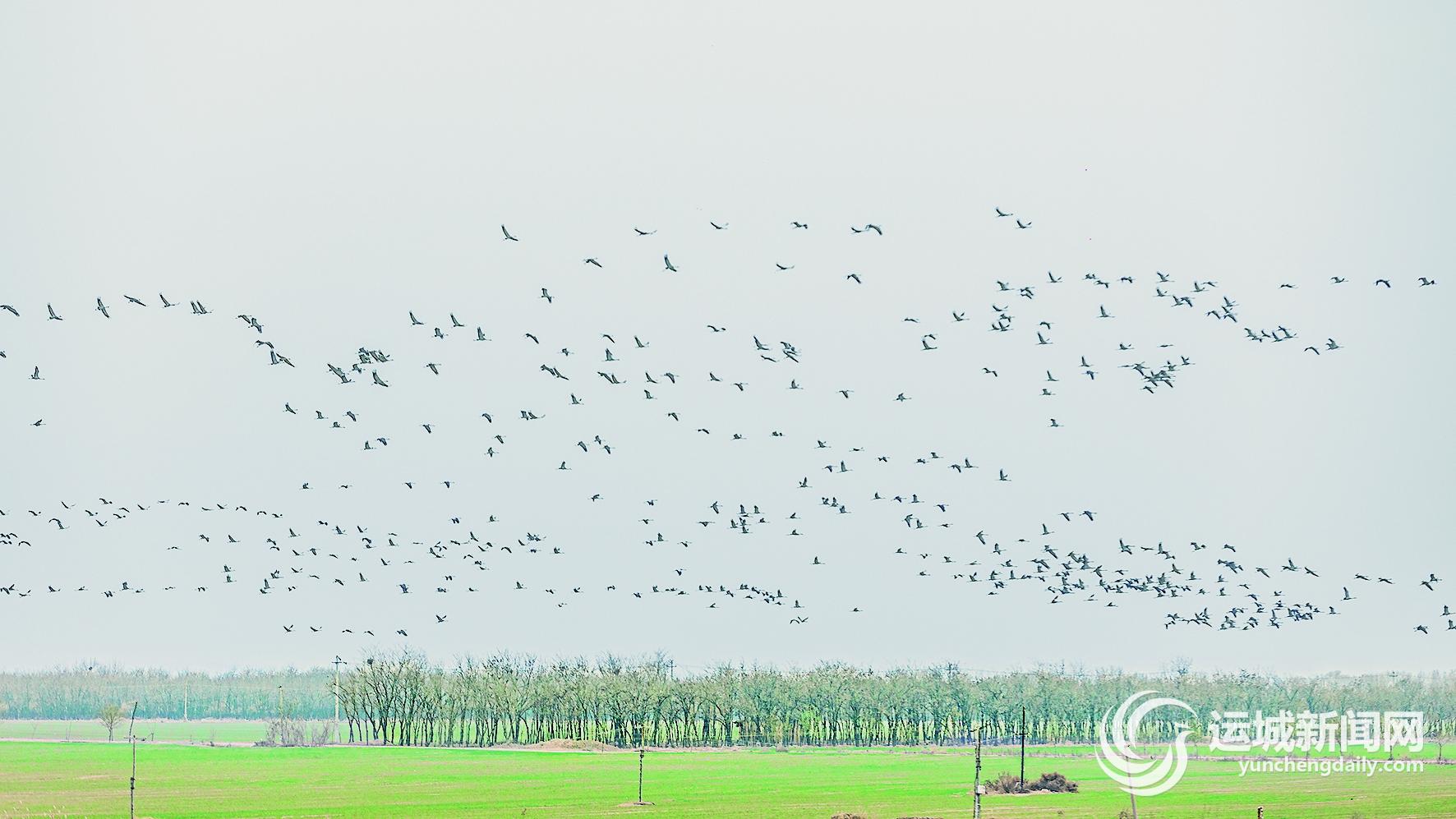 近年來,永濟市不斷加大對黃河流域生態環境的保護力度,生態環境得到改善,來此棲息的灰鶴和其他鳥類數量逐年增加。