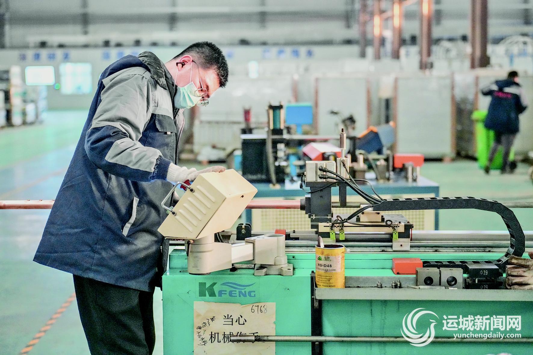 山西宏明空調科技有限公司內,工人在加工零部件。