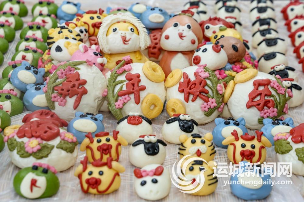 蛇年到,花饃俏。1月8日,夏縣水頭鎮的夏水饅頭工作室里一片熱鬧而忙碌的景象。工作室負責人姜莎正站在晾曬架前,仔細地整理著剛做好的各式果蔬花饃。那一個個造型別致、色彩鮮艷的花饃,仿佛在訴說著即將到來的蛇年的喜慶與歡樂。