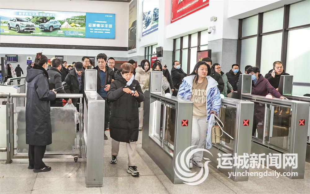 1月14日,春運首日,在高鐵運城北站,旅客有序進站。