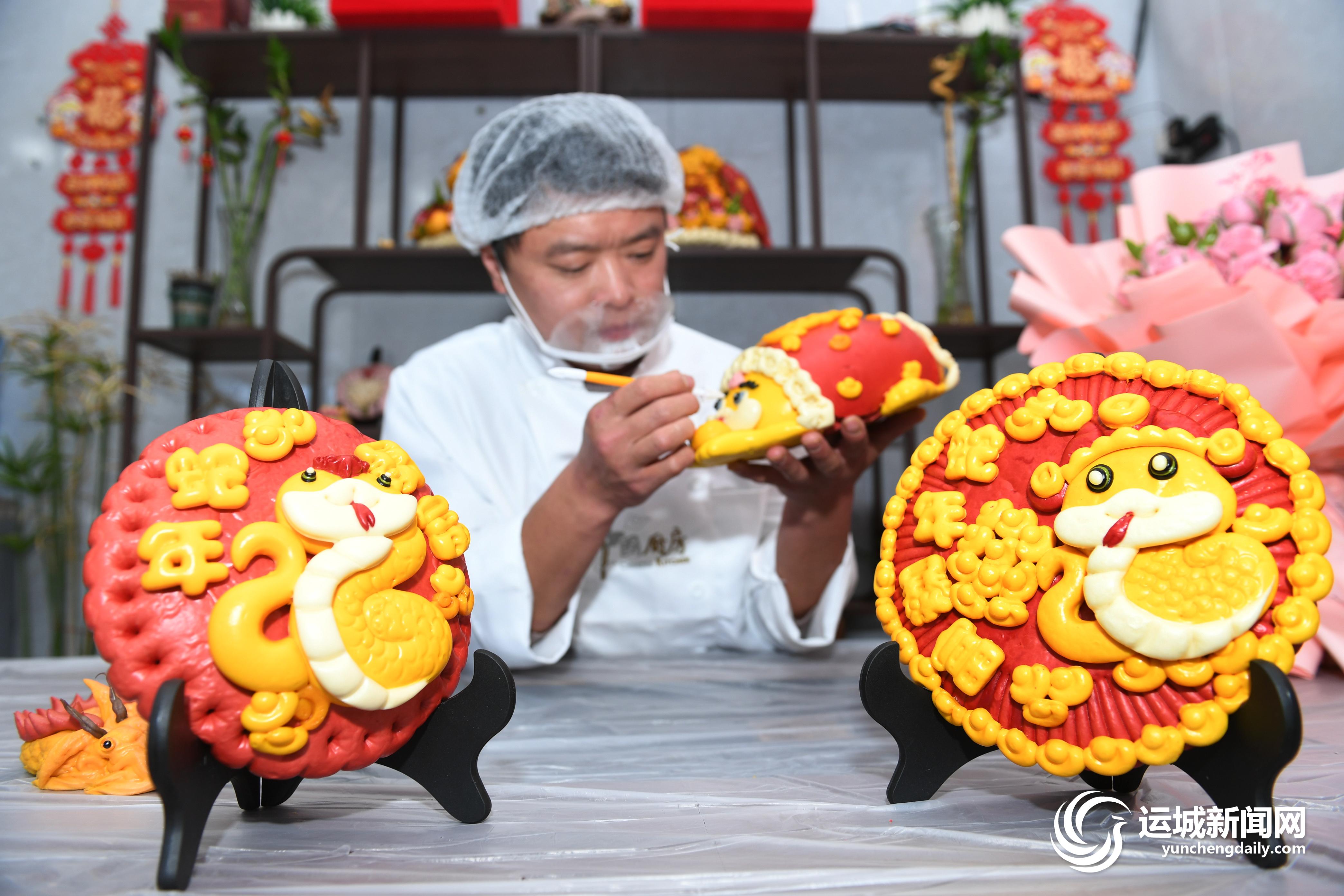隨著春節臨近,這家果蔬花饃加工坊的花饃制作進入高潮。面點師以優質面粉為原料,采用新鮮果蔬榨汁調制色彩,經過捏、壓、剪、切、貼等手法,制作出元寶、葫蘆、福袋、蛇元素等多種造型的花饃。同時,通過裝飾和點綴,使得花饃色彩鮮艷、圖案美觀,既具有觀賞價值,又富有文化內涵。