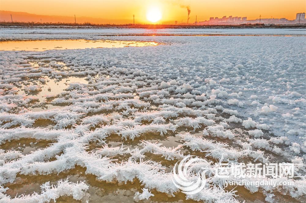 連日來,受低溫天氣影響,運城鹽湖出現“硝花”景觀,美不勝收。 記者 茹雅 攝