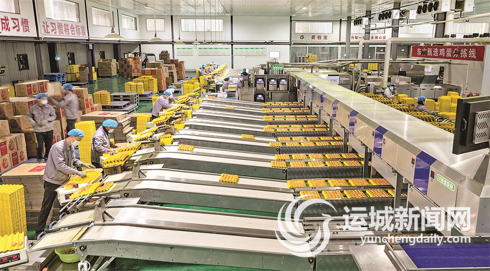 山西晉龍養殖股份有限公司佛峪口蛋雞養殖場工人在現代化生產線上分揀分裝雞蛋。