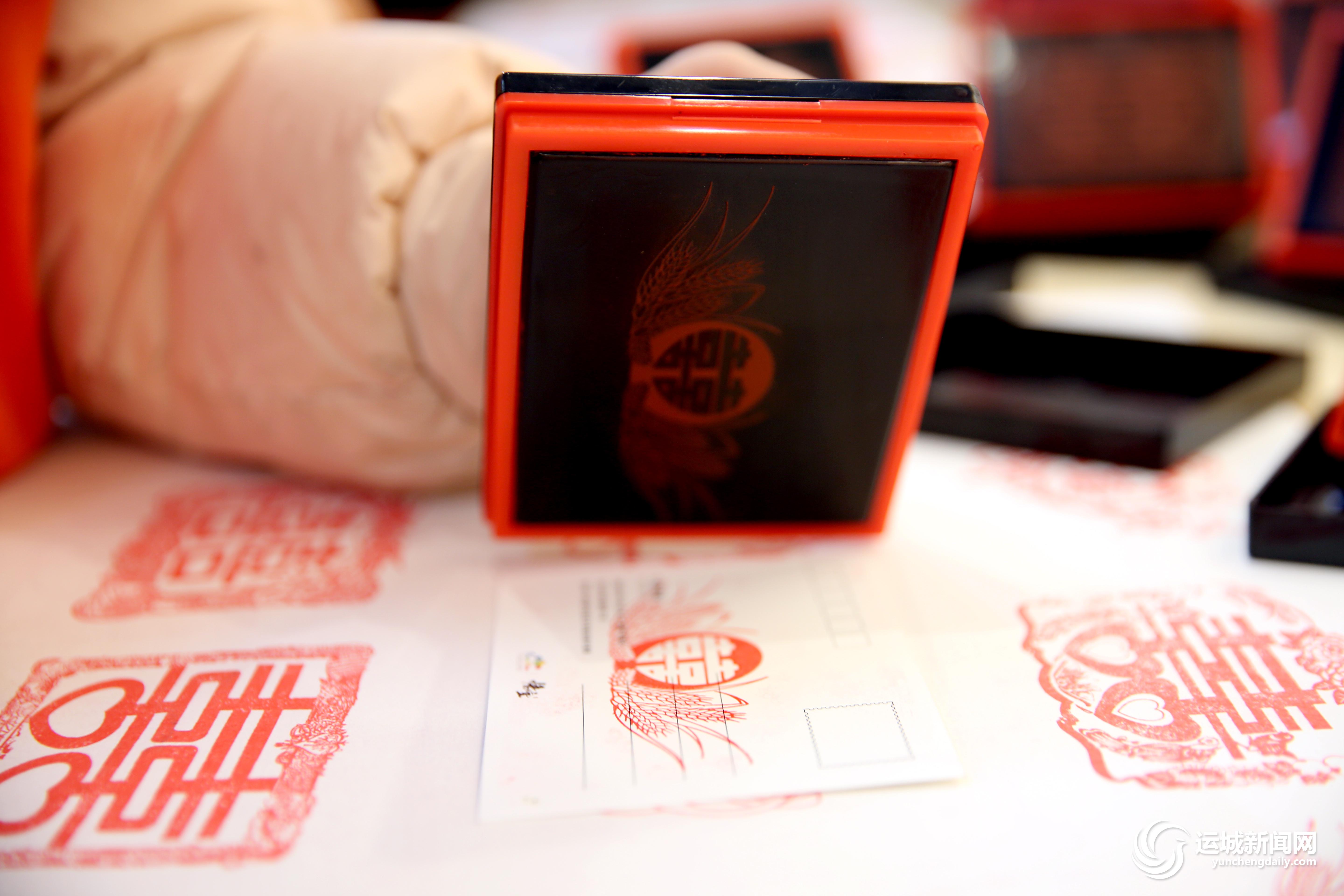 “這里好多‘囍’呀!我要集章?!毖曂?,“百囍章”前,一對情侶正在蓋“囍”章。