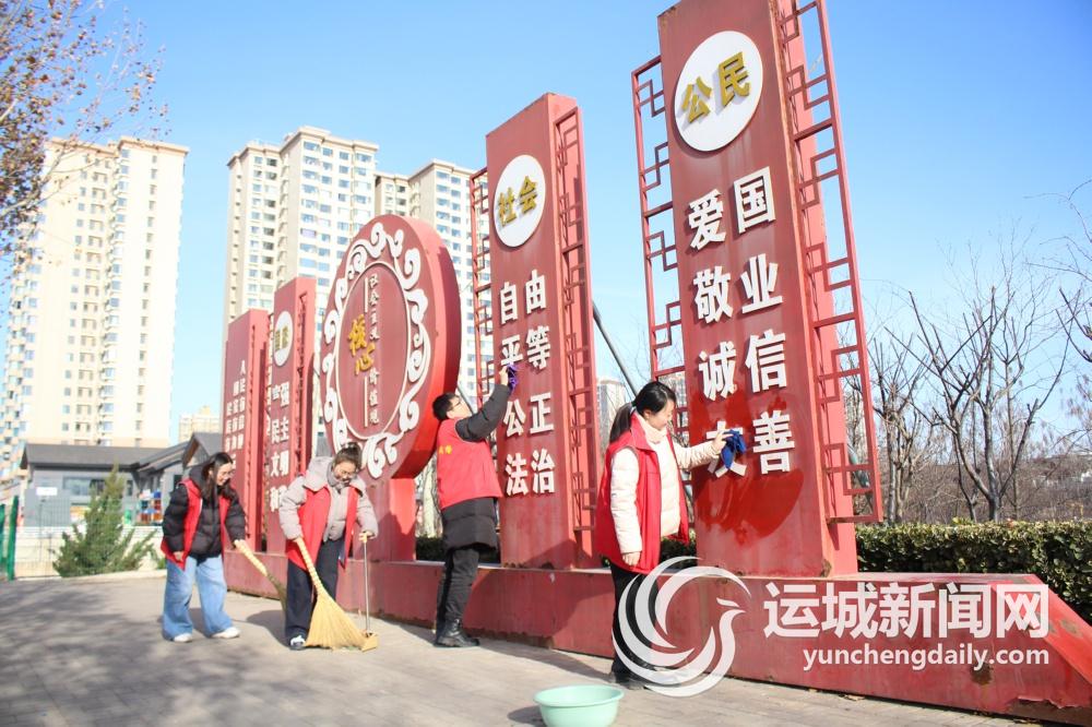 2月5日,聞喜縣社區服務中心東城社區工作人員在該縣體育公園進行環境整治,推進文明城市創建。