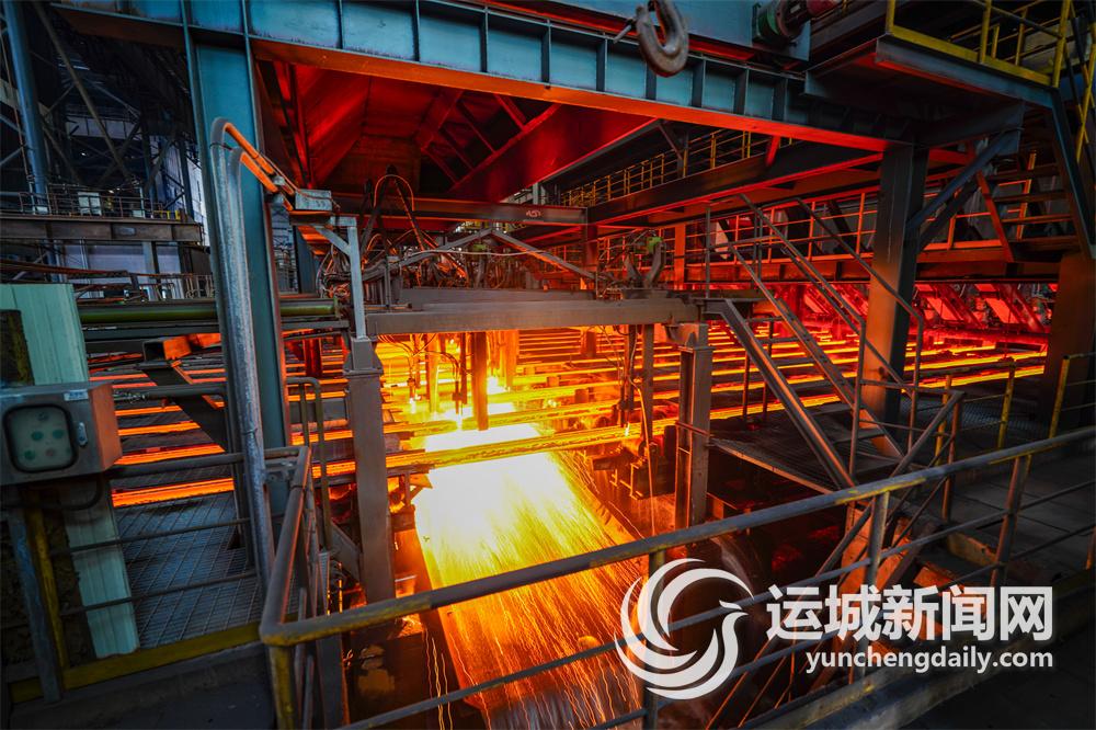 在銘福鋼鐵的煉鐵車間,1230立方米新置換的煉鐵高爐極速作業中;在煉鋼車間,通紅的鋼材被整齊切割成一塊一塊……