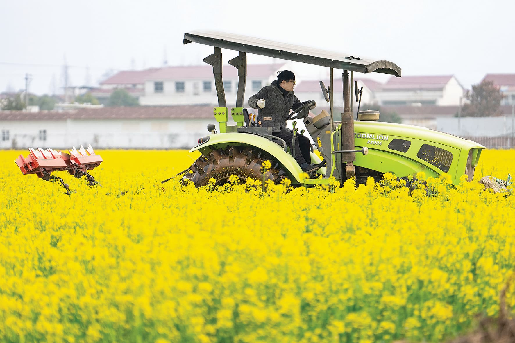 2月25日,在沅江市草尾鎮樂園村,村民操作旋耕機翻耕芥蘭綠肥。