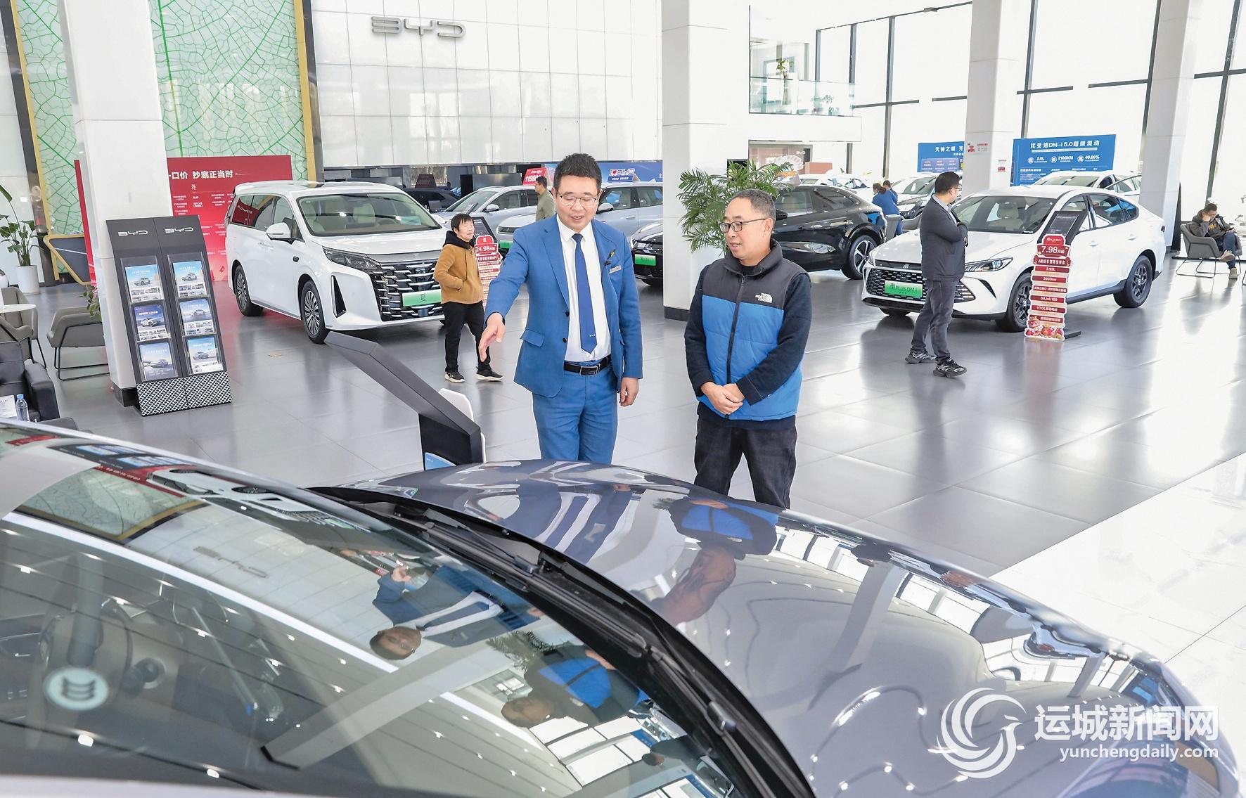 消費者在比亞迪汽車王朝網運城瑞迪4S店選購新能源汽車。 記者 金玉敏 攝