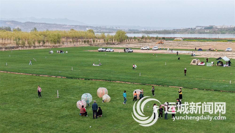 4月5日,平陸縣張村鎮黃河岸畔,游客在露營游玩,樂享假日春光。記者 金玉敏 攝