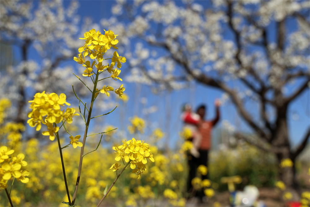 4月5日,游客在河北省滄州名人植物園內游覽賞景。 新華社發(周 洋 攝)