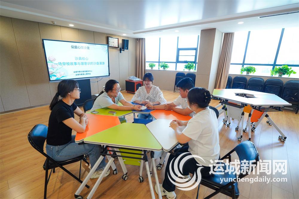 市教育心理學會的心理老師在公益心理沙龍上與來訪者互動。