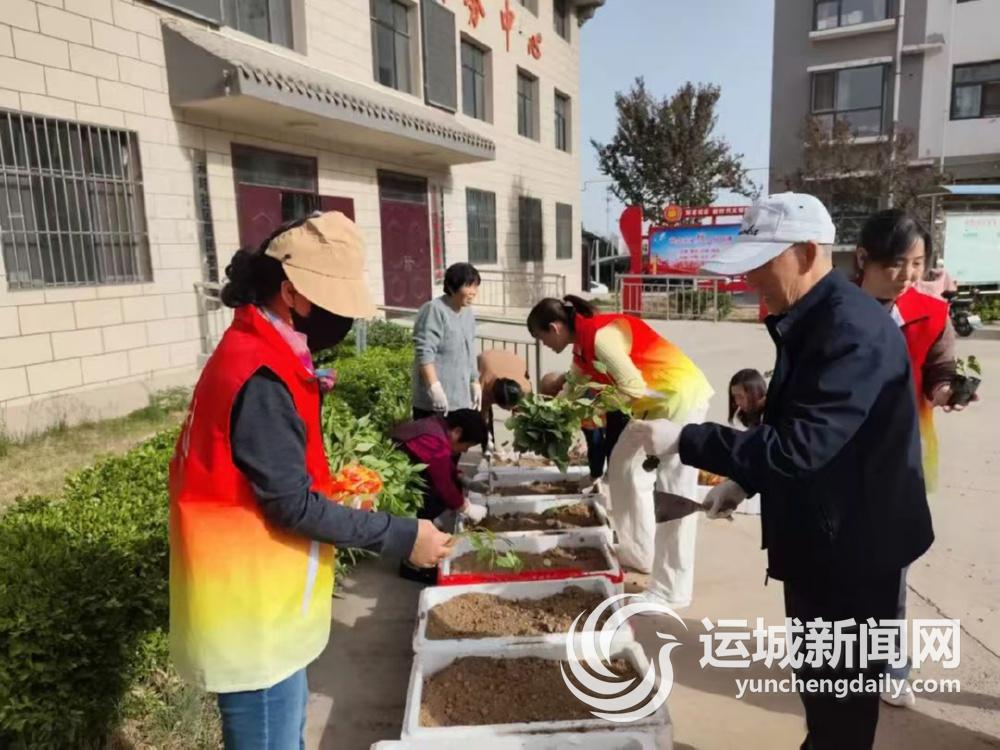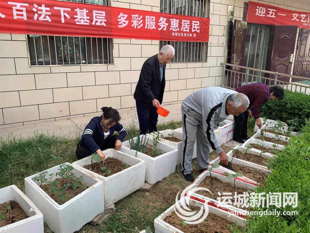 近日,在臨猗縣雙塔社區黨群服務中心旁邊的空地上,居民王金虎、周恩芳、廉改清等人一有空就來“擺弄”菜苗,有的給菜苗澆水,有的松土,幾個人邊干活邊聊天。